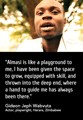 2014 marked a year of great transformation and growth. We saw two American actors: Andre Holland and board member Nyambi Nyambi come to Zimbabwe and teach acting intensives with fantastic results. We facilitated a Zimbabwean, Tafadzwa Bob Mutumbi in his pursuit to attend an American Commedia Dell'arte school. He is currently in the New York City engaging in a cultural exchange with our associate artists during his winter break. We also commenced an exciting educational endeavor, our Director Mentor Program where Directors are trained through a series of staged readings. In the New Year our mentees will commence directing their own staged readings under Almasi Associate Artist Julie Wharton's guidance. Looking forward, we aim to more deeply establish our operation systems, to allow for several exchanges to occur at once and to facilitate more talented African artists in reaching their goals. Our organization has grown at an astounding rate and more artists from Zimbabwe and the US alike have approached us for education, facilitation, opportunity and cultural exchange. In 2015 we must strive to meet the demands that our successful track record has brought in the area of artistic collaboration. We look forward to partnering with you to see these goals come to pass and assuring that the African voice is amplified. Do consider giving an end of year gift to support the African artist and intercultural artistic collaborations. Tinotenda!